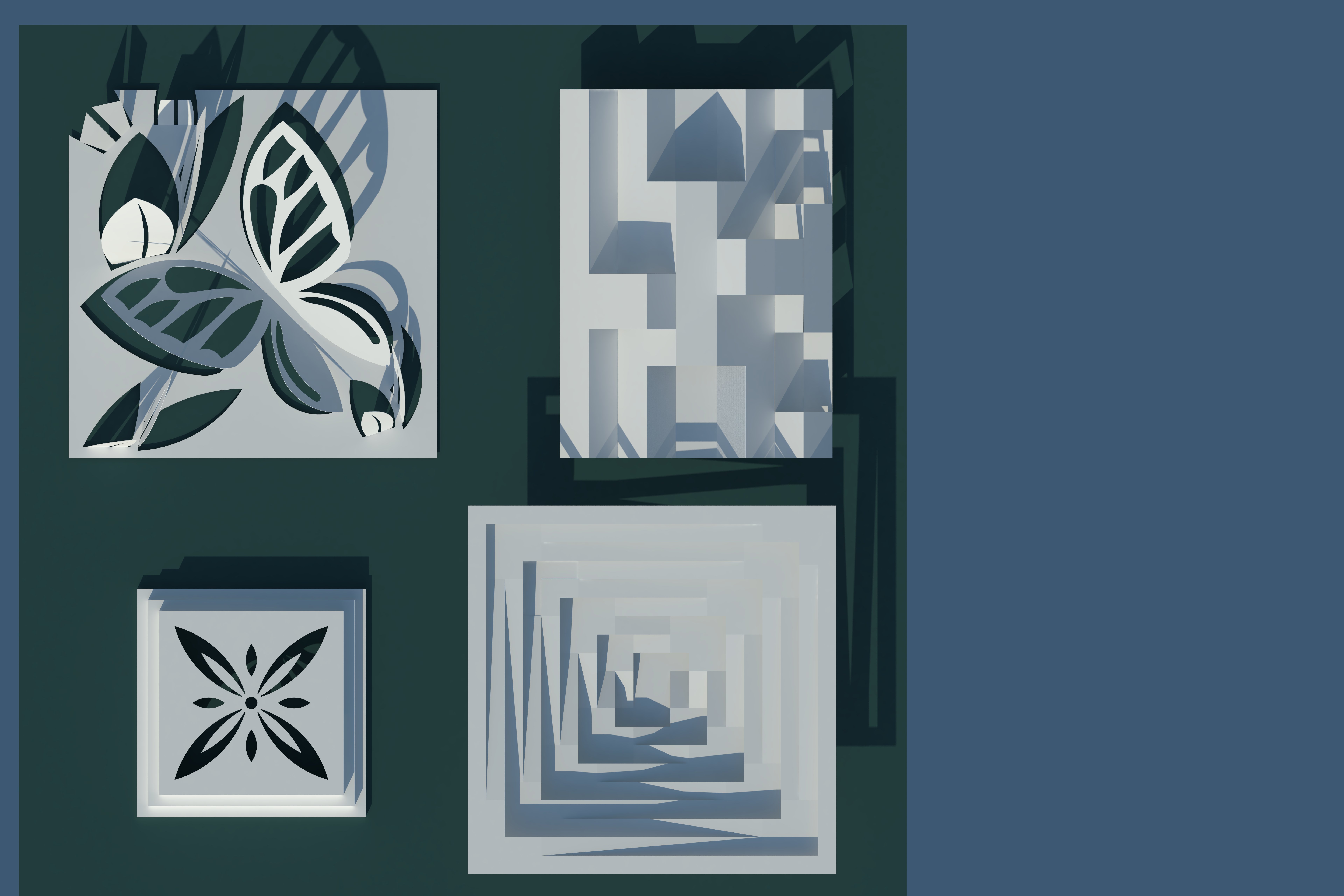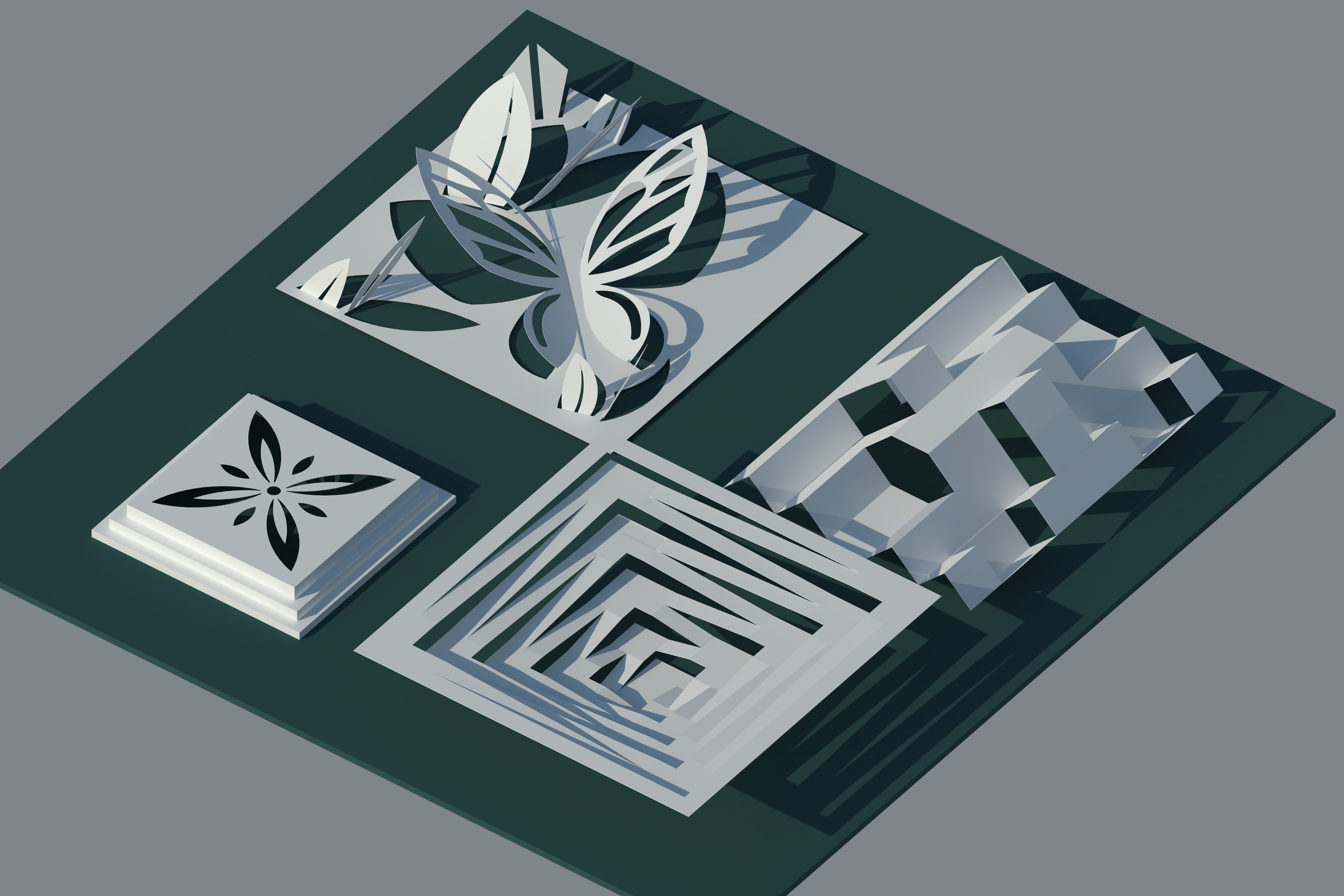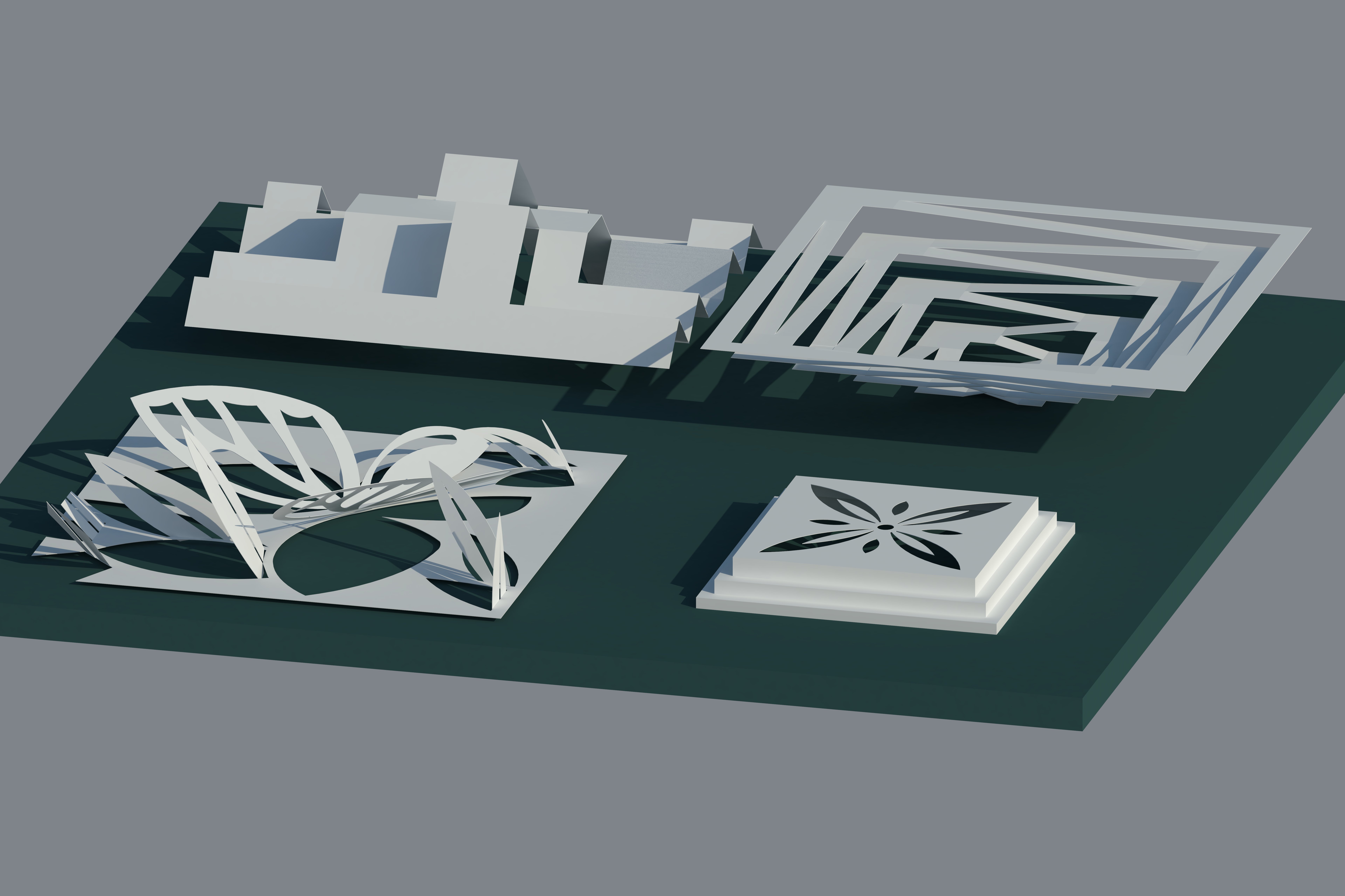 This is a handmade artcraft, which making papers in a state between 2D and 3D. The photo of the real work can not found. But the design using SkechUp remains.